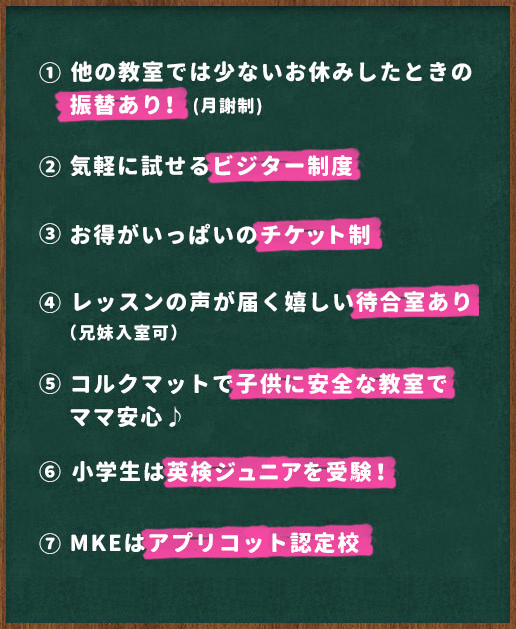 『 MKEでのレッスンの様子など写真付きで紹介しています。MKEの事がよく分かるのでぜひご覧ください!』