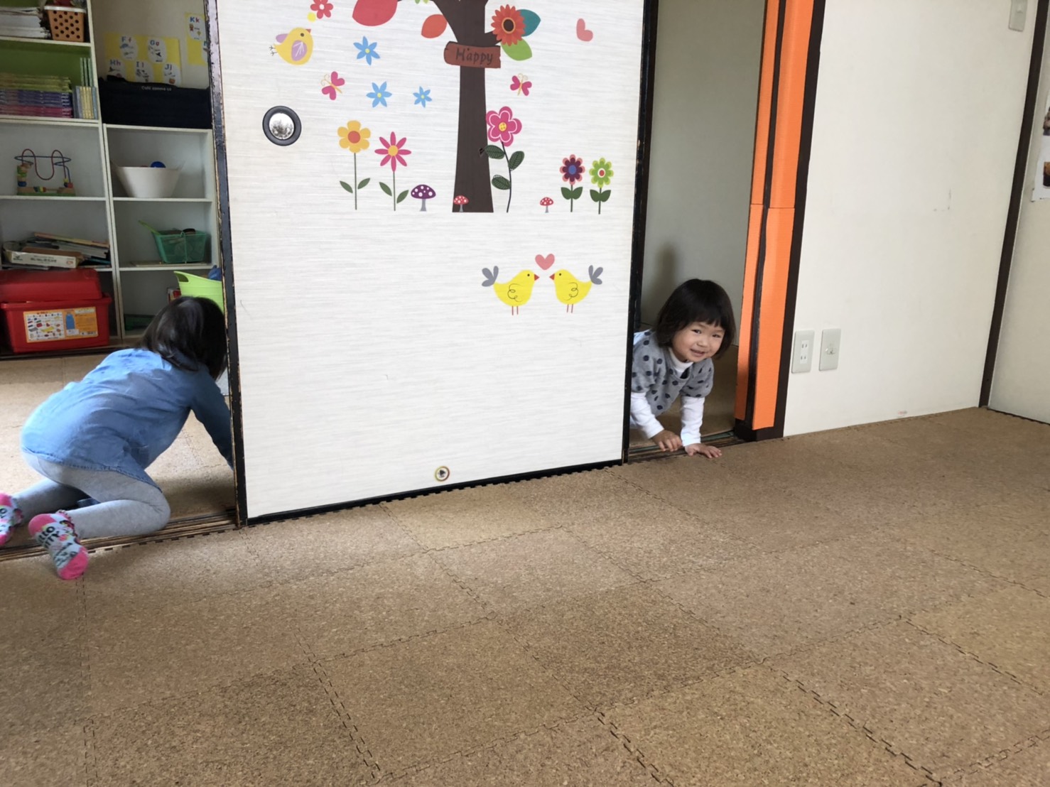 洞窟を通り抜けて。。と観るだけでなく、実際に体も動かしてお話に入り込みます!
