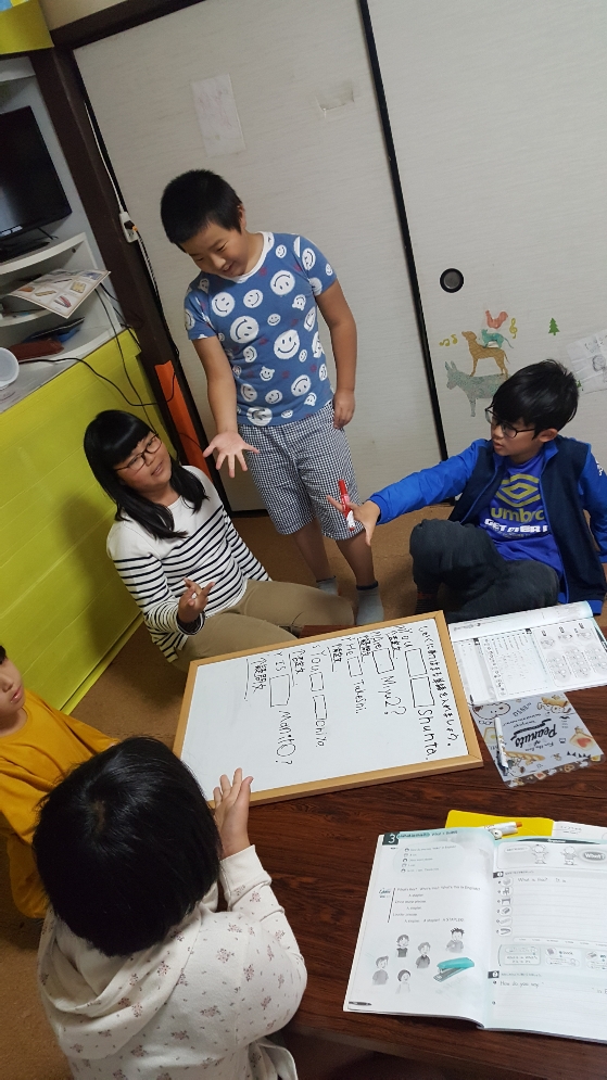 という予定だったのですが、先の小学Aクラスがホワイトボードに自分たちで書いた。という話から、このクラスもホワイトボードに書いてブログに載せたい♪