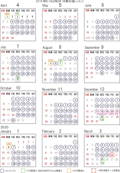 ※年に42回のレッスンになっています。○がついている日がレッスン日です。