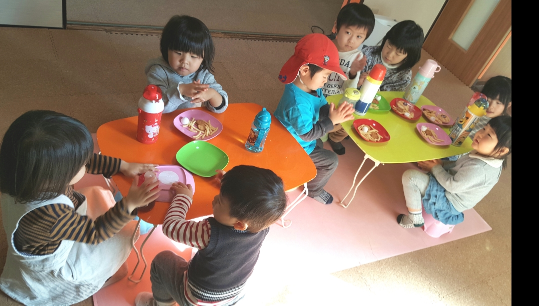 みんなで一緒に”Let’s eat!”の声がかかるまで触らないカラークラスさんをジーっと眺めて、真似るLPさんの姿もとてもかわいらしいです(^-^)