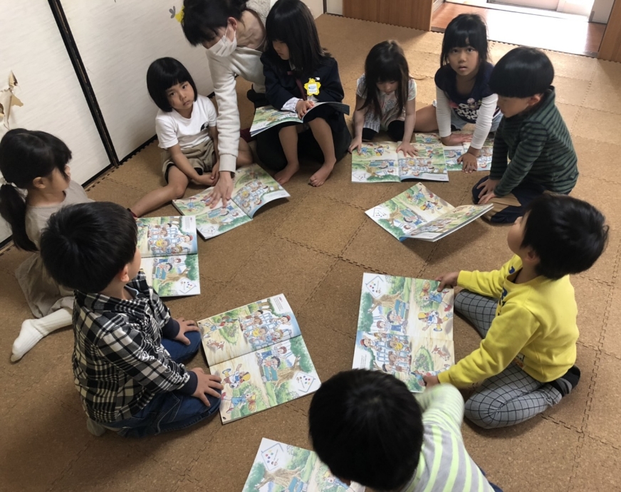 2年目ブルーさんは、1年目さんたちに新しいテキストの説明のサポートをしてくてました。