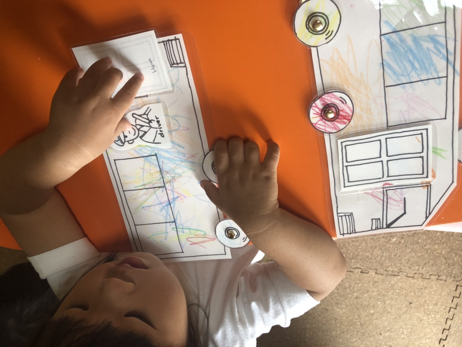 今回の2ヶ月クラフト作品は、みんな大好き「バス」の歌からです。と前出のブログでマイマイ先生が、ちょっと出し。しちゃいましたが、いよいよ出来上がってきましたよー♪